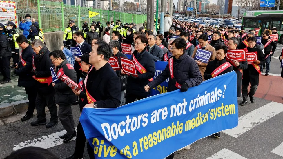 연수생 의사들은 시스템 내 의사 수를 늘리기 위해 매년 훨씬 더 많은 의대생을 대학에 입학시키려는 정부 계획에 항의하고 있습니다.